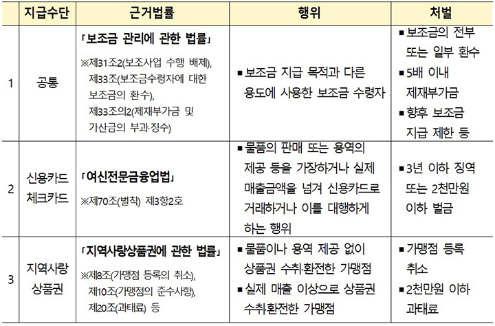 따라서 이를 개인 간 거래하거나 환전하는 행위는 ‘보조금 관리에 관한 법률’ 위반으로 간주됩니다.